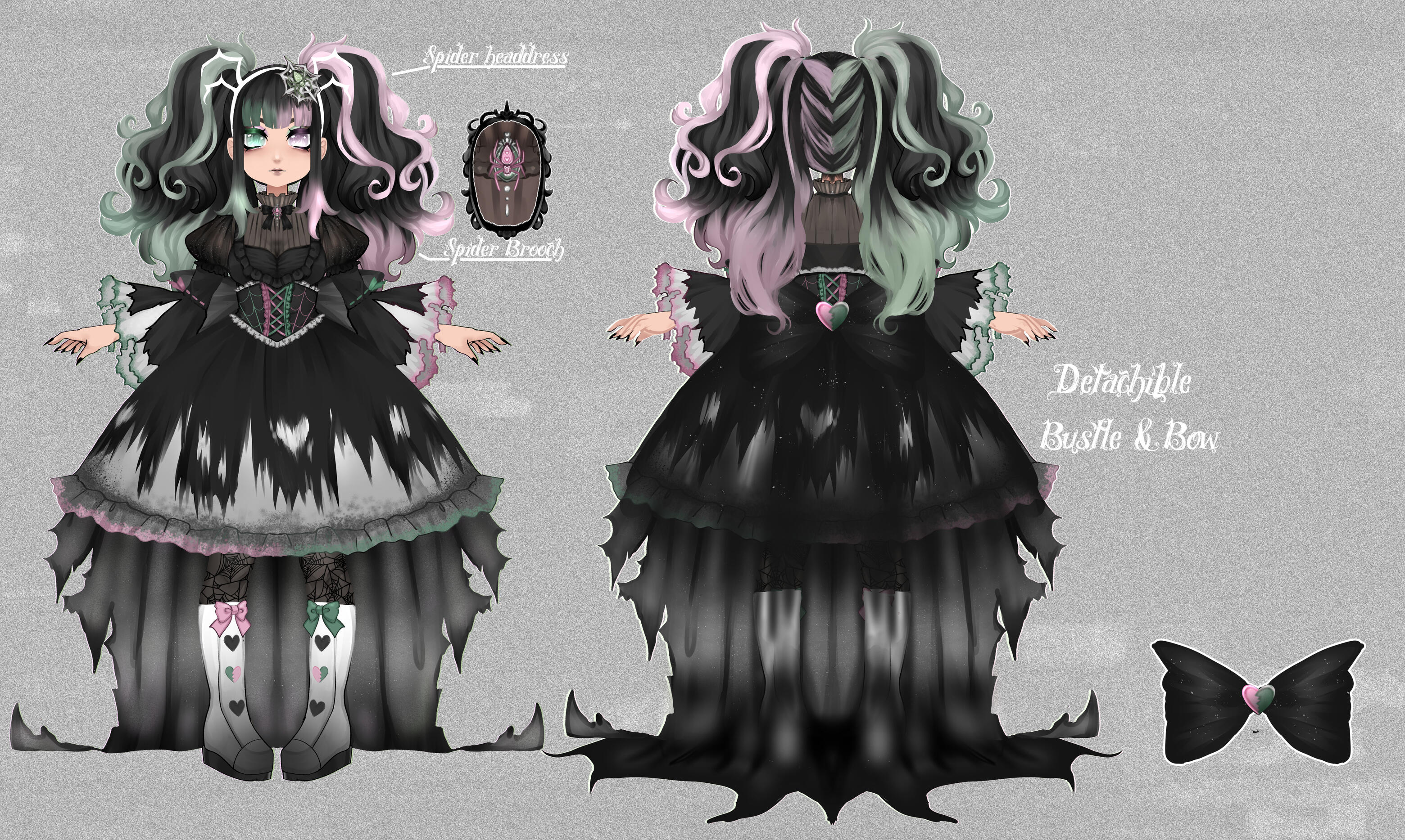 The influx of negative and unwanted emotions were too much and over time her corruption grew.She ran away to a cave after not being able to contain or control the emotions she had absorbed. Full of heart break, confusion and grief she destroys everything in her path, becoming a terrifying spider monster residing in a burned down cave.
